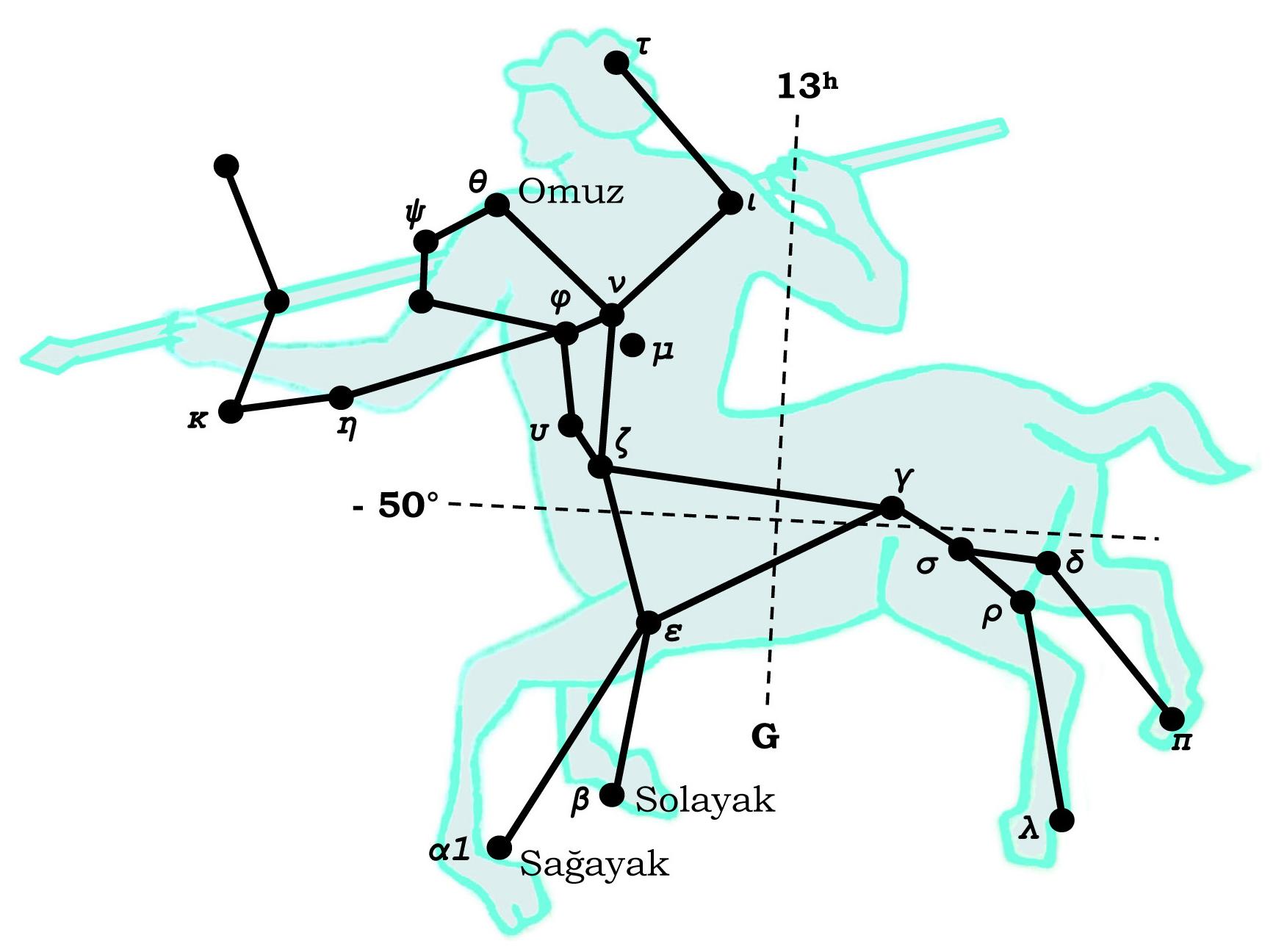 CENTAURUS IAU [Lat. centaurus < Grek. κένταυρος (kentauros) = insan başlı at]; Kodu: Cen; Genitif: Centauri.
